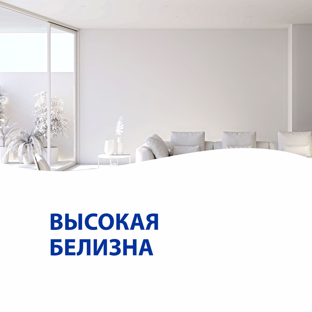- Удобна в нанесении, легко раскатывается. После высыхания, образует равномерное покрытие, которое остается глубокоматовым при разном освещении, что позволяет визуально скрывать мелкие дефекты поверхности.