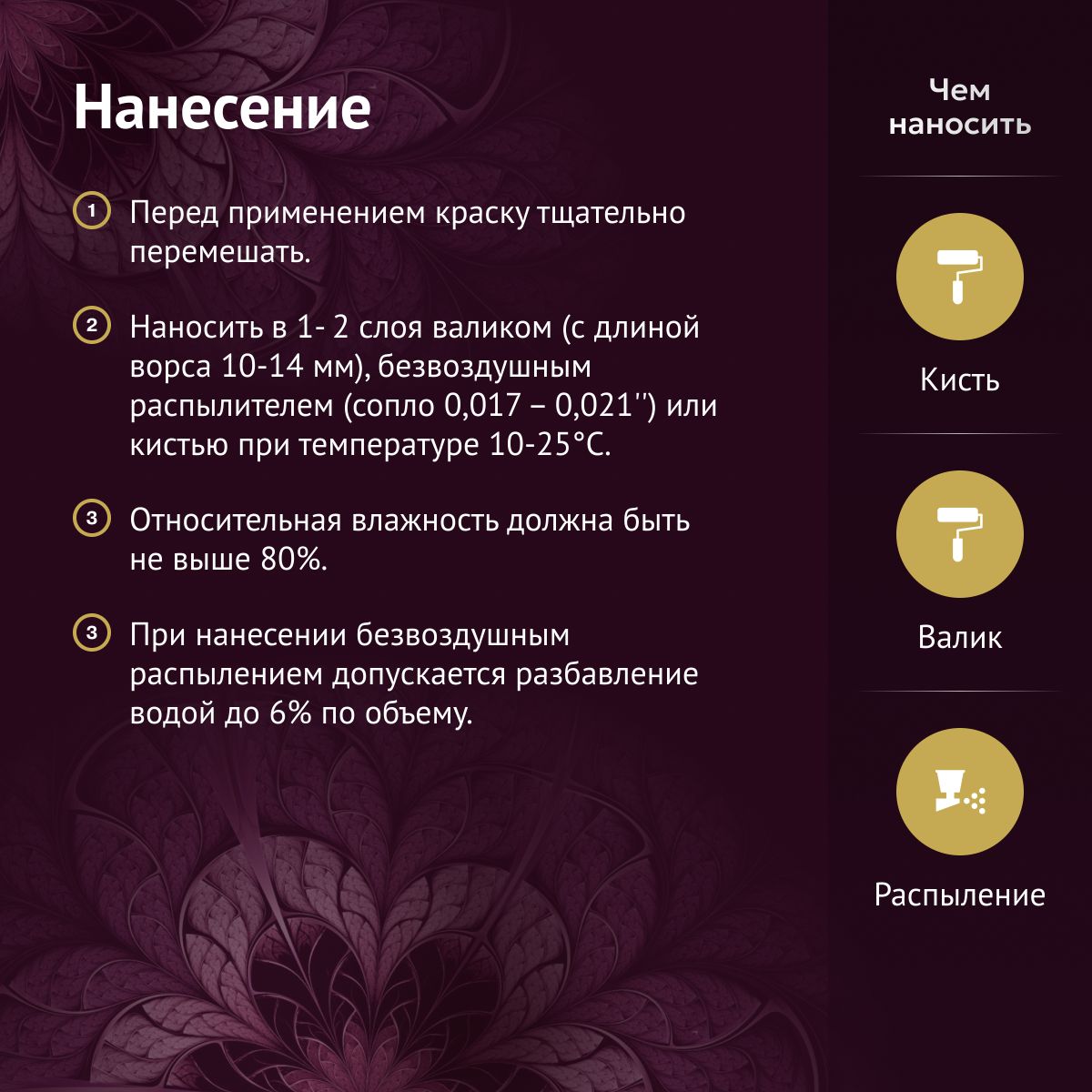 - Замедленное время высыхания дает возможность дольше обрабатывать окрашиваемую поверхность - тщательно раскатывать краску и корректировать нанесение.