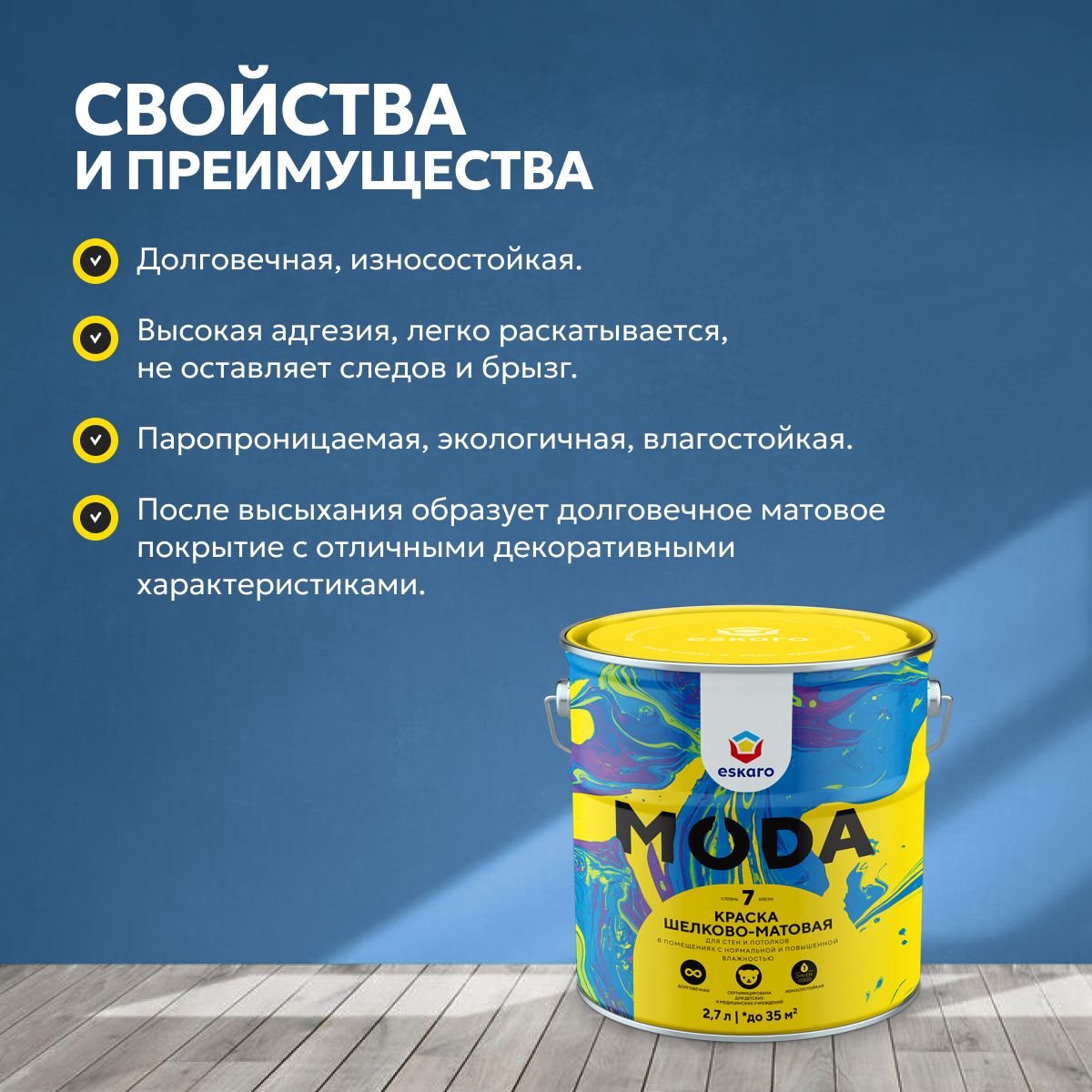 Читать все статьиMODA 7 особопрочная шелковисто-матовая краска 1 класса истираемости