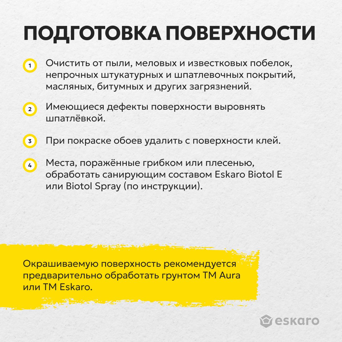- Обладает высокой адгезией к поверхности, легко раскатывается, наносится без брызг и пузырей.