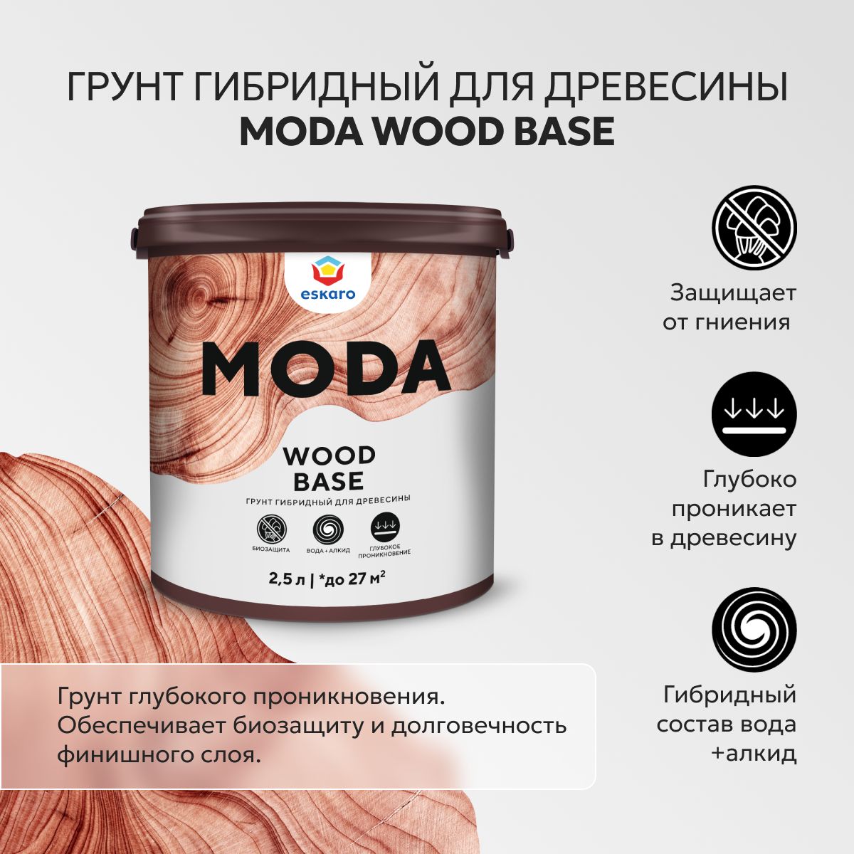 Читать все статьиModa Wood Base грунт гибридный для дерева