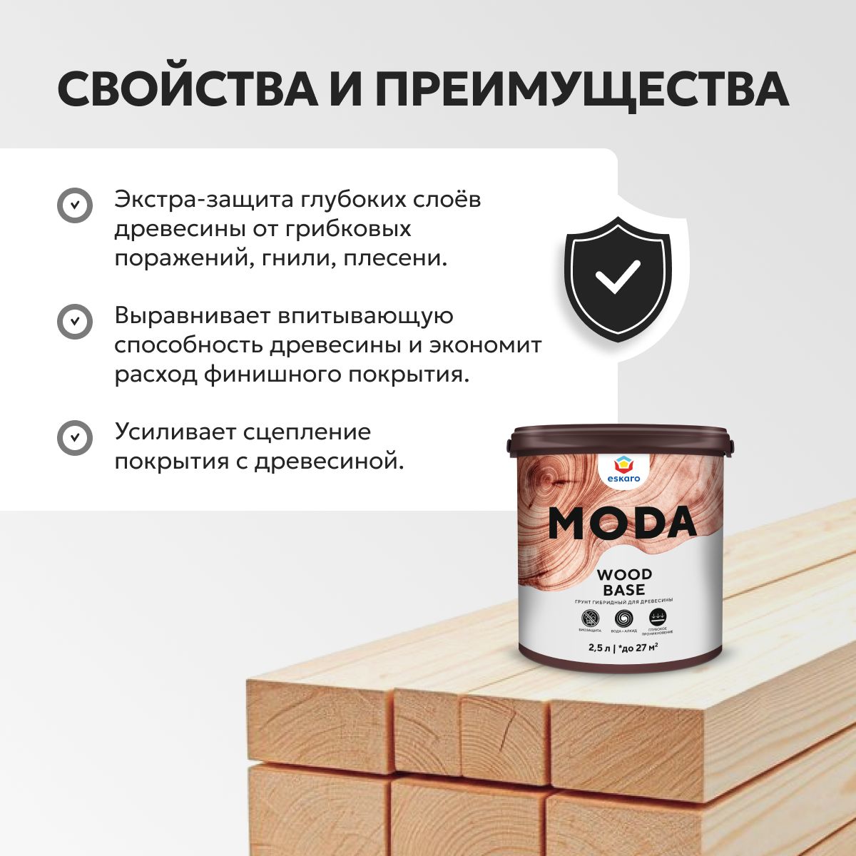 - Усиливает сцепление покрытия с древесиной