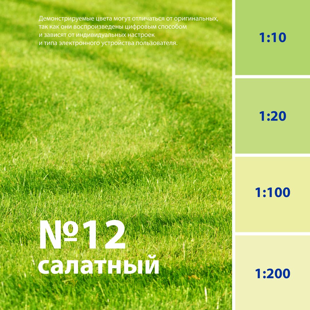При работе с обширной поверхностью рекомендуется приготовить заколерованный состав в одной емкости для равномерности тона. Перед применением можно сделать пробные выкрасы. Не использовать как самостоятельное покрытие.