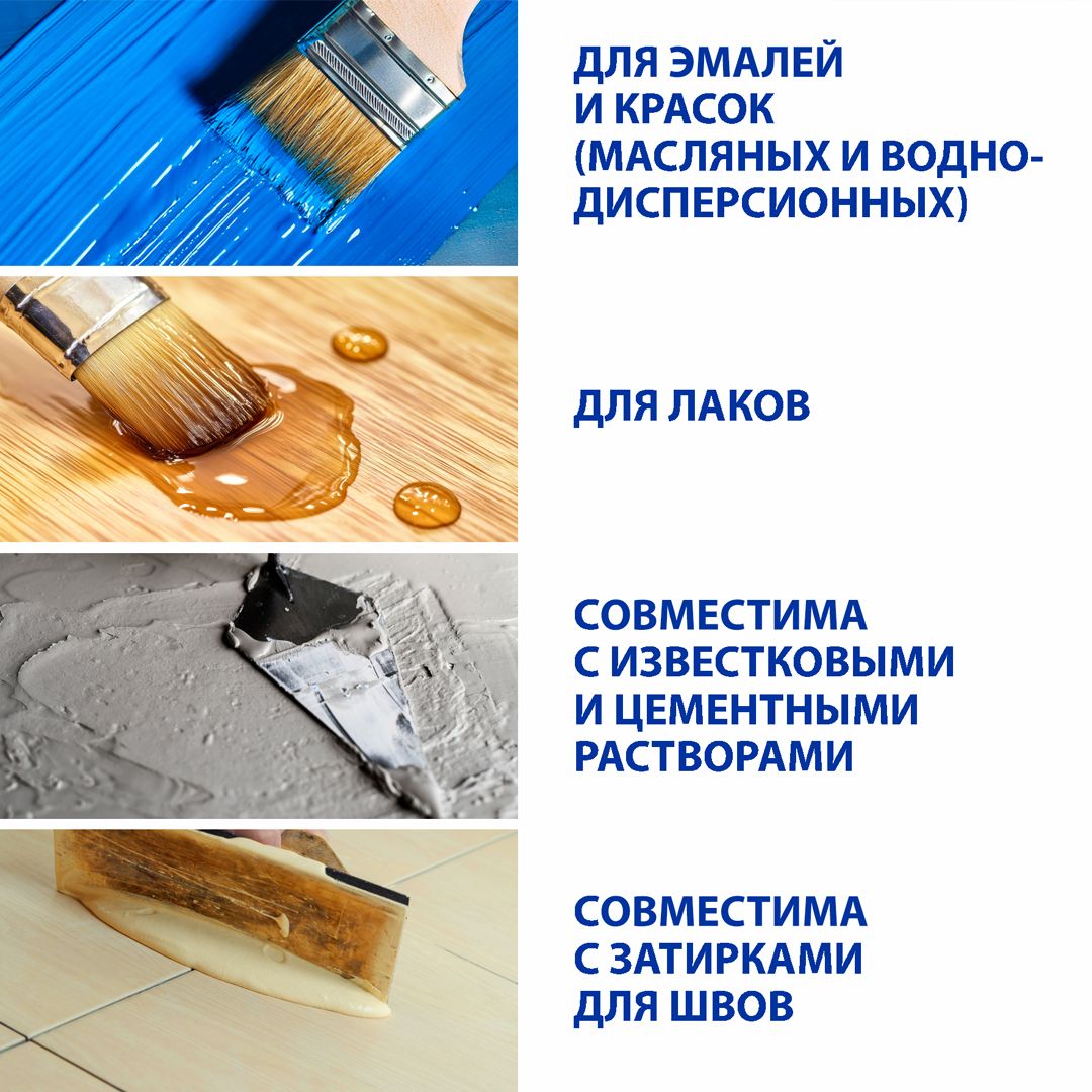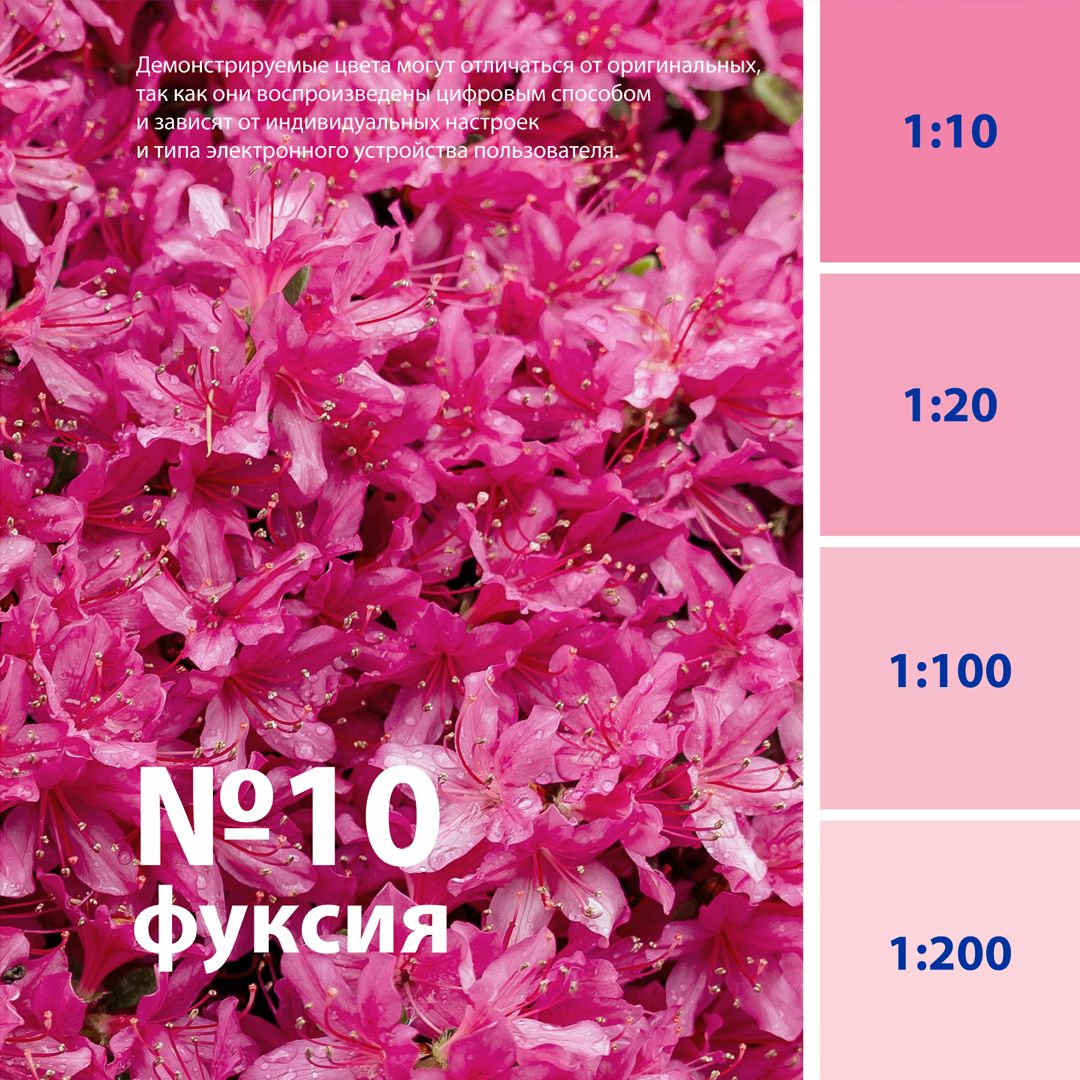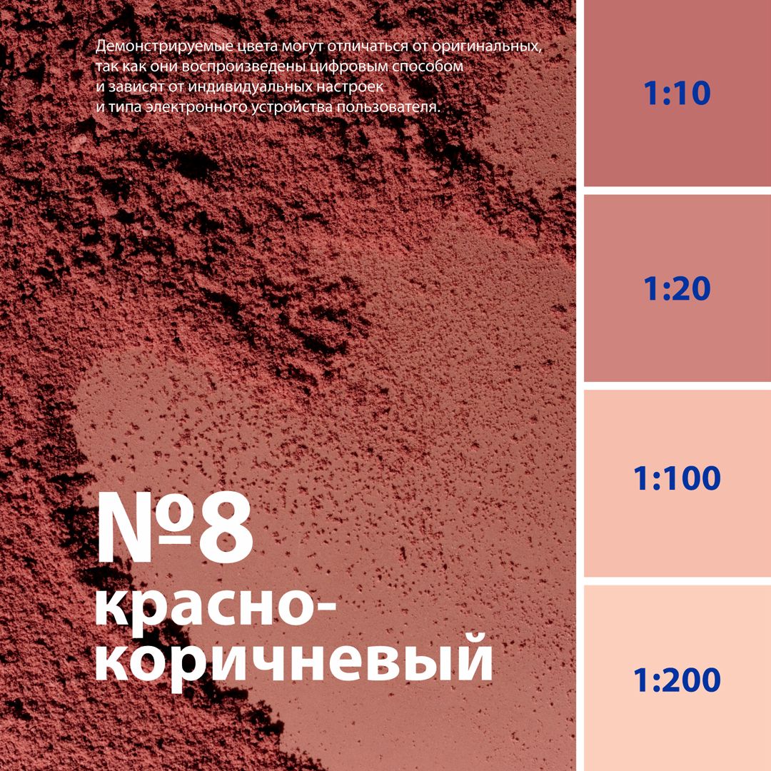Для колеровки акриловых, латексных, водно-дисперсионных (ВД), алкидных (ПФ, ГФ), масляных (МА), нитроцеллюлозных (НЦ) красок и эмалей, лаков, декоративных штукатурок, шпатлевок, известковых и цементных растворов, затирок для швов и др. составов.Свойства: